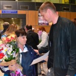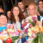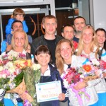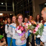 У вечорі 11 травня, літак зі збірною командою України на борту приземлився вдома у Харкові. В аеропорту спортсменок та тренерів чекали рідні та близькі, а також почесна делегація на чолі з директором Департаменту у справах молоді та спорту Віталієм Кириленко.