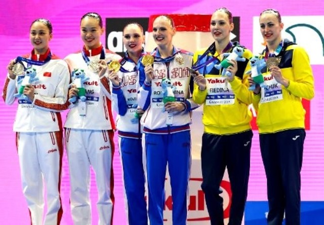 Анастасія Савчук та Марта Федіна здобули бронзову медаль в технічній програмі дуетів з синхронного плавання на чемпіонаті світу з водних видів спорту, який з 12 по 28 липня відбувається в Південній Кореї.