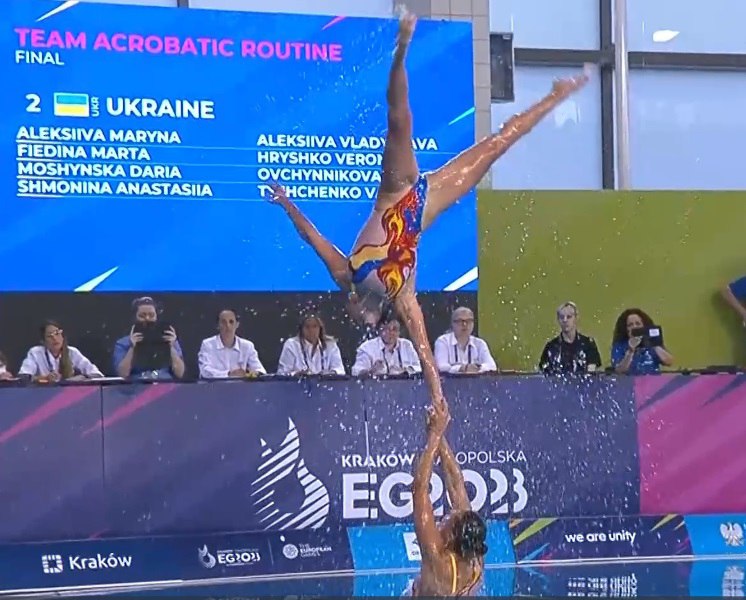 24 червня на ІІІ Європейських іграх, які зараз відбуваються у Польщі, збірна України з артистичного плавання, яка повністю складається зі спортсменок Харківської області, посіла друге місце в акробатичній групі.